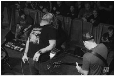 Maine has some really great metal, including Portland’s groove metal band Trawl, who are often local support for tours coming through northern New England. Although they had some technical issues on the guitar side, the rhythm section held strong until the situation was corrected. If I hadn’t been watching, I may not have noticed because I was distracted by the groove of the bass.